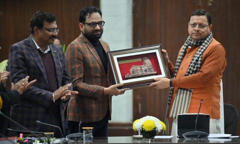 मुख्यमंत्री धामी ने सचिवालय में परिवहन विभाग के सचिव व निगम के प्रबंध निदेशक को किया सम्मानित