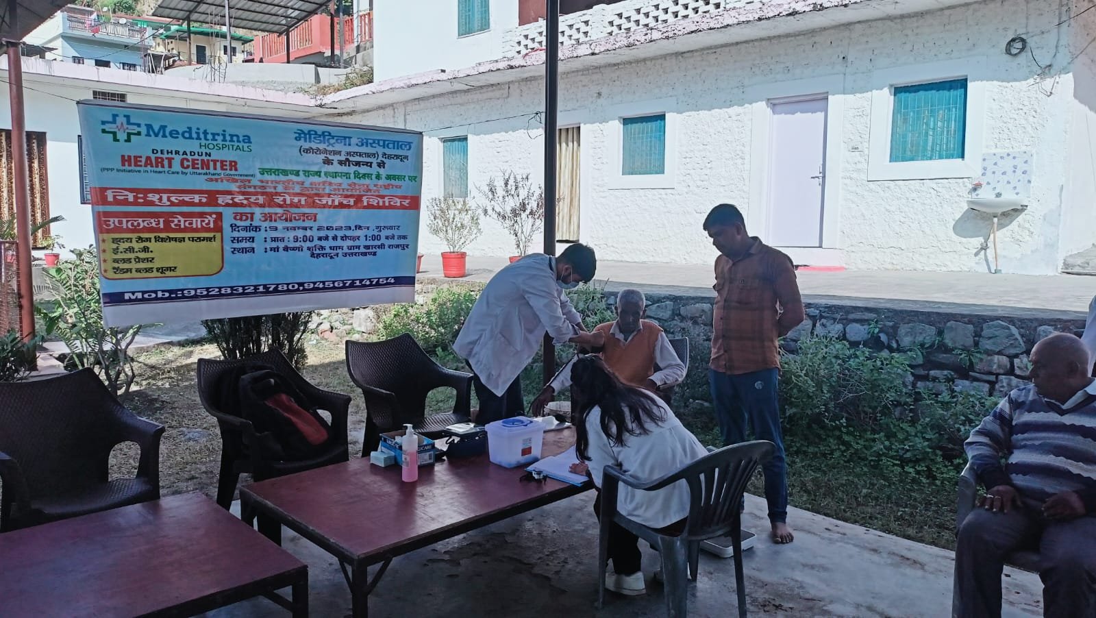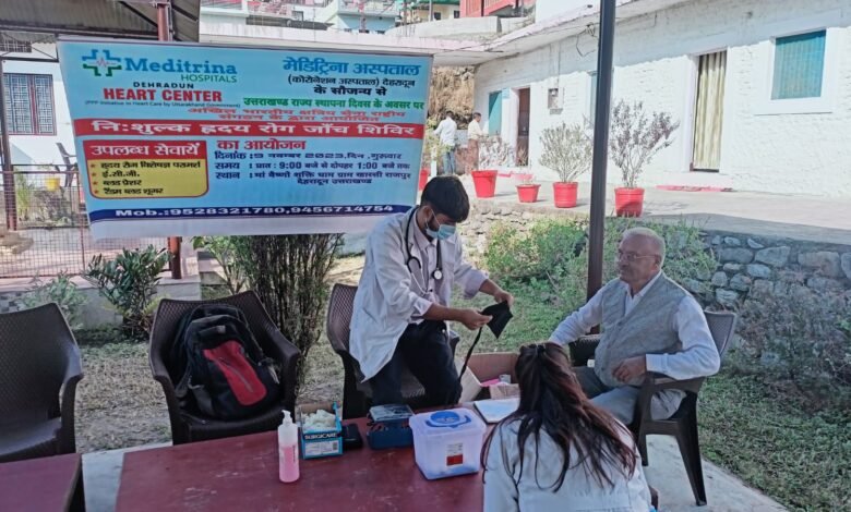 उत्तराखंड राज्य स्थापना दिवस : कैंप में आए ग्राम वासियों की नि:शुल्क बीपी, शुगर, ईसीजी आदि की जांच