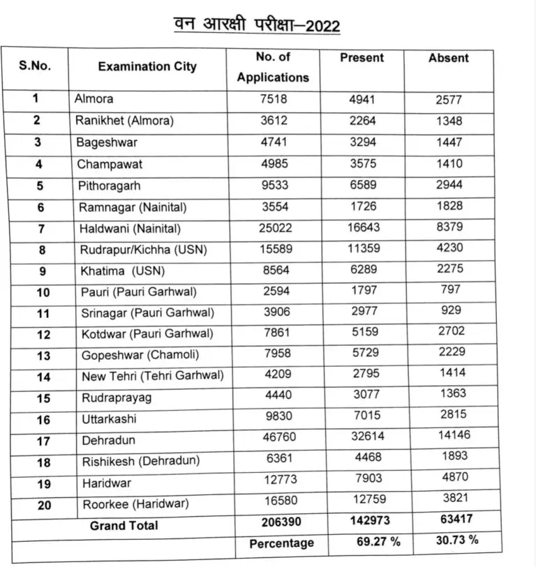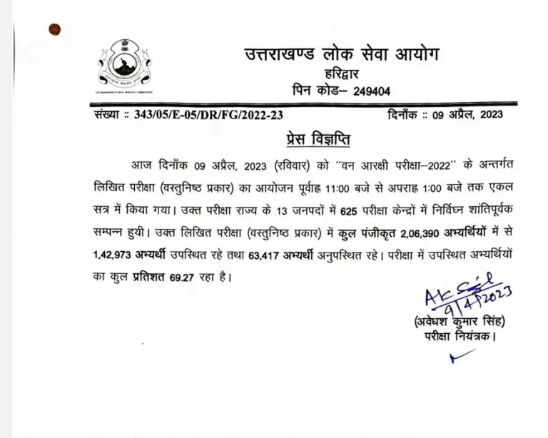 Uttarakhand UKPSC: Commission gave big update on “Forest Constable Examination”-2022 completed at 625 examination centers