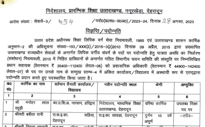 शिक्षा विभाग में बंपर प्रमोशन, देखें सूची