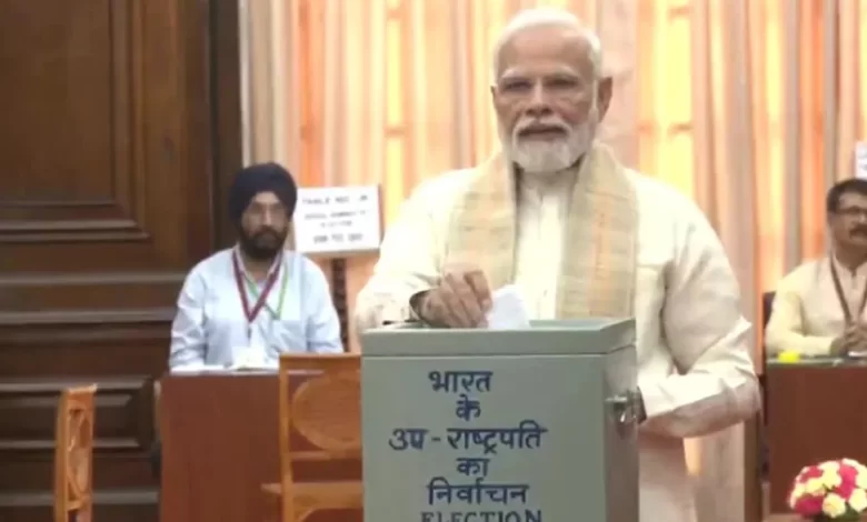 उपराष्ट्रपति चुनाव के लिए 10 बजे से वोटिंग शुरू हो गई है। जो कि शाम 5 बजे तक चलेगी। उपराष्ट्रपति चुनाव के लिए वोटिंग शुरू हो चुकी है प्रघानमंत्री मोदी ने भी मतदान कर लिया है। मतदान संसद भवन में चल रहा है। वोटिंग शाम 5 बजे तक होगी उसके बाद मतगणना की जाएगी। मतगणना के बाद नतीजों का ऐलान भी आज ही किया जाएगा। उपराष्ट्रपति चुनाव में कुल 788 वोट हैं जिसमें जीत के लिए 394 वोटों की जरूरत होती है।
