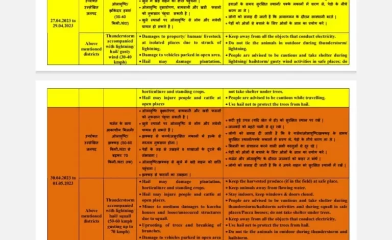 मौसम अपडेट: 28- 29 को यलो और 30 और 1 को ऑरेंज अलर्ट