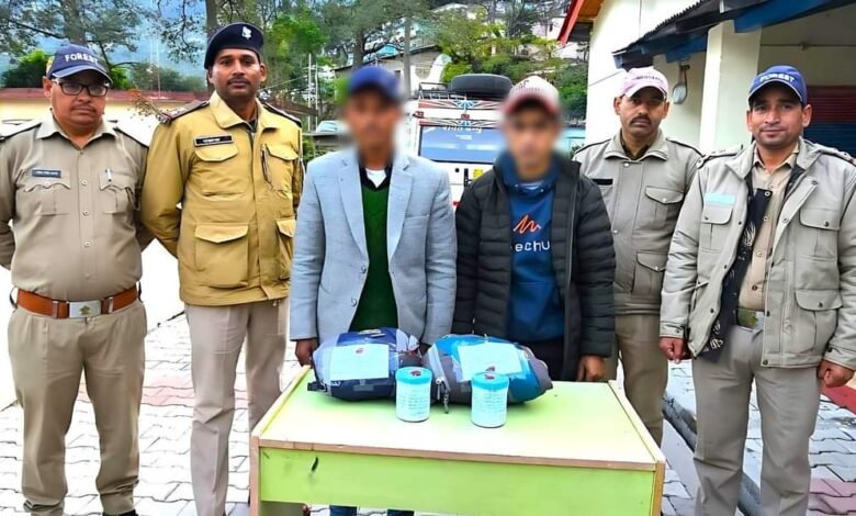 आदेश के अनुपालन एवं पुलिस उपाधीक्षक कर्णप्रयाग अमित सैनी व पुलिस उपाधीक्षक ऑपरेशन नताशा सिंह के पर्यवेक्षण में वन्य जीव जन्तुओं की तस्करी की रोकथाम हेतु चलाये गये अभियान को सफल बनाते हुए आज दिनांक 03/12/2023 को एसओजी चमोली व वन विभाग की संयुक्त टीम द्वारा मुखबिर की सूचना पर अभियुक्त भरत सिंह पुत्र पदम सिंह नि0 ग्राम प्राणमती पोस्ट कनोल थाना नंदानगर घाट जिला चमोली उम्र 36 वर्ष को कस्तूरी मृग (नर मस्क डियर) की कस्तूरा -1,वजन कुल 39.85 ग्राम,कस्तूरा मृग (नर मस्क डियर) के दांत -1,वजन कुल 4.22 ग्राम व अभियुक्त खीम सिंह पुत्र हयात सिंह दानू नि0 ग्राम प्राणमती पोस्ट कनोल थाना नंदानगर घाट जिला चमोली उम्र 36 वर्ष को कस्तूरा मृग (नर मस्क डियर) के कस्तूरा – 1, वजन कुल 40.27 ग्राम व कस्तूरा मृग (नर मस्क डियर) के दांत -1, वजन कुल 3.88 ग्राम के साथ बस स्टैण्ड कर्णप्रयाग के पास से जनपद से बाहर ऋषिकेश जाने से पहले धर दबोचा लिया। जिसकी अंतराष्ट्रीय बाजार में अनुमानित कीमत 05 लाख है।